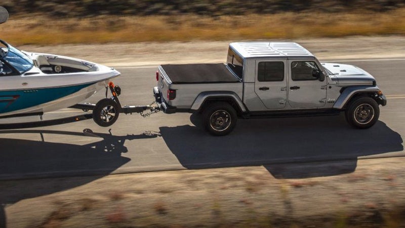 The 2020 Jeep Gladiator comes standard with tow hooks that'll allow you to tow up to 7,650 pounds with ease. The engine of the Gladiator provides 285-horsepower on a 3.6-liter Pentastar V-6 engine that'll allow your Jeep to handle any environment, terrain, or incline. All Gladiators are available in six-speed manual and eight-speed automatic transmissions depending on your driving preferences.