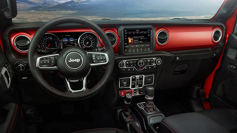 The Willys version boasts 17-inch black aluminum wheels, a black front frame overlay, and a distinctive Willys hood decal. The top-tier Overland model stands out with its body-colored wheel arches enclosing unique 18-inch aluminum wheels. The Rubicon model is made for peak performance, with off-road tires, a raised suspension, and electronic locking differentials.