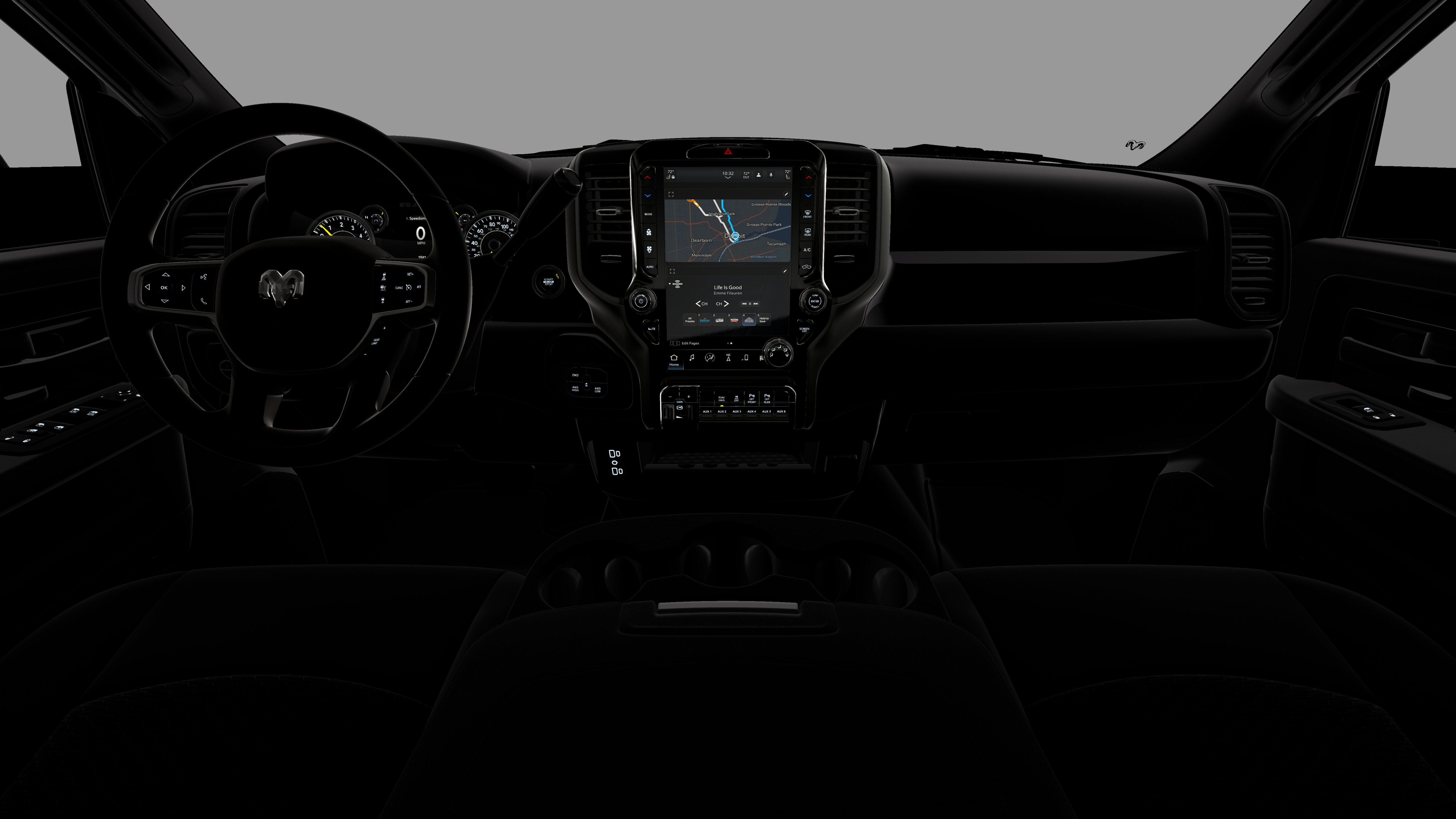 - Radio w/Seek-Scan, Clock, Speed Compensated Volume Control, Aux Audio Input Jack, Voice Activation, Radio Data System and Uconnect External Memory Control