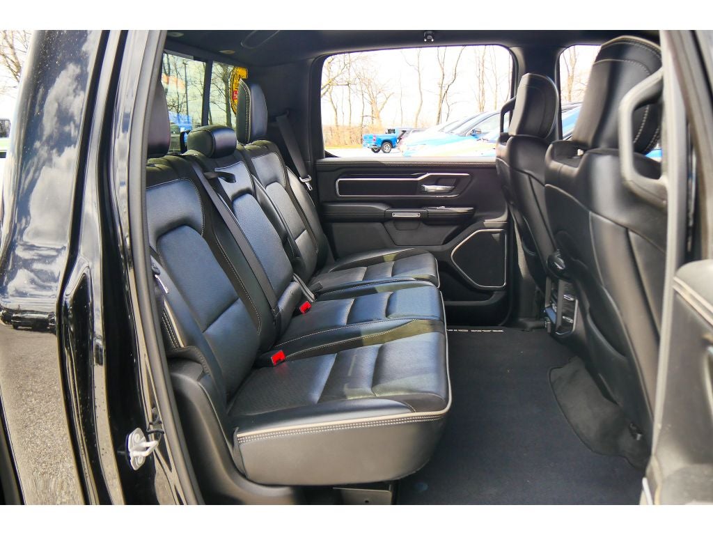 Quick Order Package 25H Laramie. Laramie Level B Equipment Group: Remote Tailgate Release; Harman/kardon 19 Speaker Premium Sound; Rear Underseat Compartment Storage; Auto High Beam Headlamp Control; Rain Sensitive Windshield Wipers; Heated Second Row Seats; ParkSense Front/rear Park Assist with Stop; Tailgate Ajar Warning Lamp; Foam Bottle Insert (door Trim Panel); Rear 60/40 Folding Split Recline Seat. Night Edition: Leather Trimmed Bucket Seats; Accent Color Premium Power Mirrors; Black Headlamp Bezels; Sport Performance Hood; Body Color Door Handles; 22" X 9" Forged Aluminum Wheels; 285/45R22XL BSW All Season Tires; MOPAR Black Tubular Side Steps; Black Exterior Truck Badging; Anti-Spin Differential Rear Axle; Black Interior Accents; Dual Exhaust with Black Tips; Body Color Front Bumper; Grille Surround 3 Black Texture 2 Black; Auto Dimming Exterior Passenger Mirror; Body Color Rear Bumper with Step Pads; Black Painted Exterior Mirrors Caps. Uconnect 12 Radio with Navigation. Leather Trimmed Bucket Seats. Anti-Spin Differential Rear Axle. ParkSense Front/rear Park Assist with Stop. Rear Underseat Compartment Storage. Diamond Black Crystal PC. Diamond Black Crystal PC. 3.92 Rear Axle Ratio. **Equipment listed is based on original vehicle build and subject to change. Please confirm the accuracy of the included equipment by calling the dealer prior to purchase.**