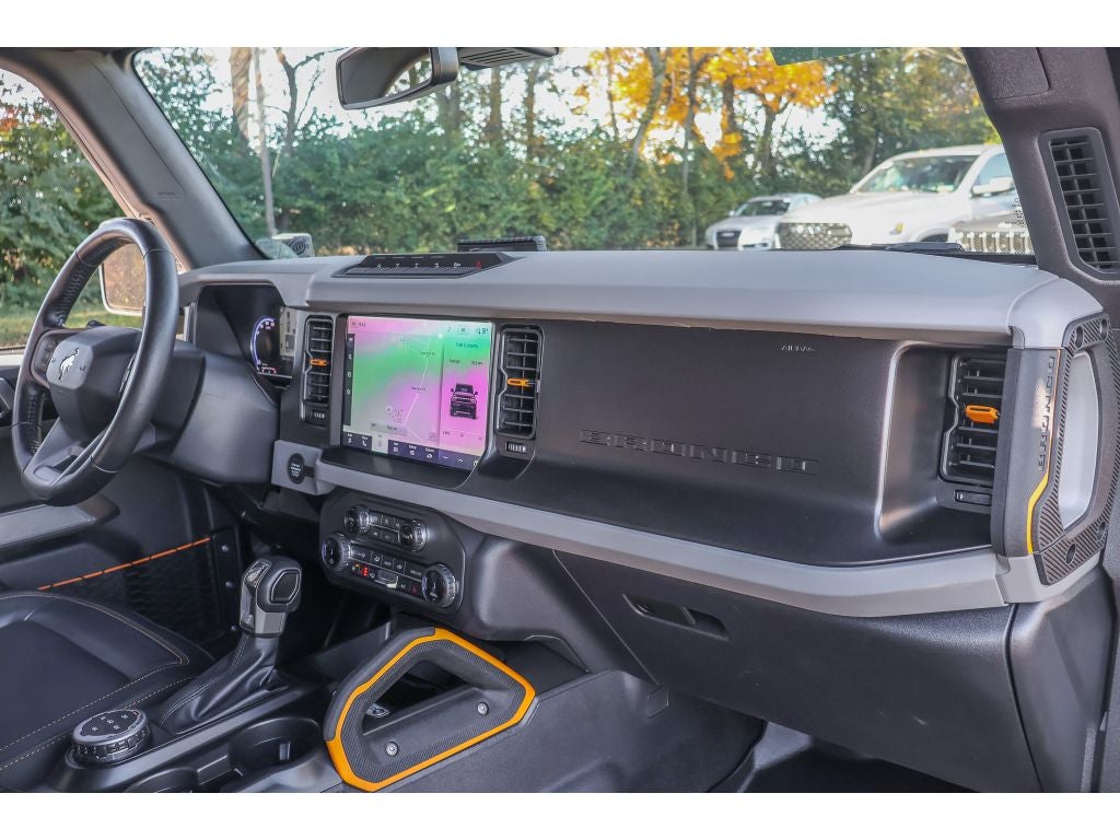 You'll never again be lost in a crowded city or a country region with the navigation system on this model. This 2022 Ford Bronco Advanced offers Android Auto for seamless smartphone integration. Our dealership has already run the CARFAX report and it is clean. A clean CARFAX is a great asset for resale value in the future. The leather seats in this 1/2 ton suv are a must for buyers looking for comfort, durability, and style. This Ford Bronco has auto-adjust speed for safe following. Heated seats for those cold winter days are included in this vehicle. Apple CarPlay: Seamless smartphone integration for this 2022 Ford Bronco Advanced - stay connected and entertained on the go! Start the Ford Bronco from inside with remote start. This vehicle is equipped with the latest generation of XM/Sirius Radio. This model is pure luxury with a heated steering wheel. The rear parking assist technology on this vehicle will put you at ease when reversing. The system alerts you as you get closer to an obstruction.