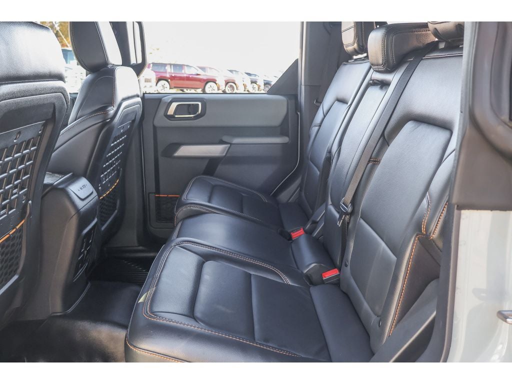 Equipment Group 334A Lux Package: Rear Parking Sensors; Power Outlet - Back Side of Center Floor Console; Auto-Dimming Interior Rearview Mirror; Driver and Front Passenger Illuminated Sliding Visor Vanity Mirrors; Evasive Steering Assist; Heated Steering Wheel; Additional Sound Deadening; Information on Demand Panel; Wireless Charging Pad; Dual-Zone Electronic Automatic Temperature Control; Ambient Footwell Lighting; Remote Start System; 2-Door Intelligent Access with Lock/unlock; Connected Built-In Navigation; 17" Machined Carbonized Aluminum Wheels; 2 Smart Charging USB Ports in Dashboard; 12" LCD Capacitive Touchscreen with Swipe Capability; Front Row Heated Seats; Adaptive Cruise Control; B&O Sound System by Bang and Olufsen; Enhanced Voice Recognition; Front Parking Sensors; 360-Degree Camera; LT285/70R17 A/T Tires; Universal Garage Door Opener; Sideview Mirrors. Ford Co-Pilot360: Auto High-Beam Headlamps; Rear View Camera; Pre-Collision Assist with Automatic Emergency Braking; Blind Spot Information System (BLIS); Lane-Keeping System. Sasquatch Package: High Clearance Fender Flares; High Clearance Suspension; Position-Sensitive Bilstein Shock Absorbers. Leather-Trimmed/vinyl Bucket Seats. Connected Built-In Navigation. Towing Capability. Keyless Entry Keypad. **Equipment listed is based on original vehicle build and subject to change. Please confirm the accuracy of the included equipment by calling the dealer prior to purchase.**