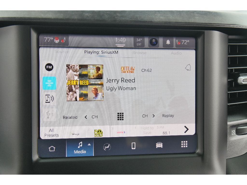 Quick Order Package 25Z Big Horn: Big Horn Badge. Big Horn Level 2 Equipment Group: Google Android Auto; SiriusXM Radio Service; Bluetooth® Handsfree Phone and Audio; USB Host Flip; Rear Window Defroster; Integrated Center Stack Radio; ParkSense Front/rear Park Assist with Stop; Rear View Auto Dim Mirror; For Details. Visit DriveUconnect.com; Power Adjustable Pedals; For More Info. Call 800-643-2112; Rear Power Sliding Window; Rear Dome with On/off Switch Lamp; Connectivity - US/Canada; Glove Box Lamp; 4G LTE Wi-Fi Hot Spot; 115V Auxiliary Rear Power Outlet; GPS Antenna Input; Media Hub with 2 Charge Only USBs; Exterior Mirrors with Heating Element; Power 8-Way Driver Seat; Auto Dim Exterior Driver Mirror; Global Telematics Box Module; Heated Front Seats; Uconnect 5 W Radio with 8.4" Display; Heated Steering Wheel; 8.4" Touchscreen Display; Black Exterior Mirrors; Class IV Receiver Hitch; Security Alarm; Black Premium Power Mirrors; Apple CarPlay; Big Horn Instrument Panel Badge; Remote Start System; SiriusXM Satellite Radio; Exterior Mirrors with Supplemental Signals; Exterior Mirrors Courtesy Lamps; Air Conditioning ATC with Dual Zone Control; 115V Auxiliary Power Outlet; Cluster 7.0" TFT Color Display; Universal Garage Door Opener; Power-Folding Mirrors; Convex Wide-Angle Mirror Insert; Sun Visors with Illuminated Vanity Mirrors; Power 2-Way Driver Lumbar Adjust. Night Edition: 275/55R20 OWL All Season Tires; Deluxe Cloth Bucket Seats; Accent Color Premium Power Mirrors; Black Headlamp Bezels; Black Exterior Truck Badging; Anti-Spin Differential Rear Axle; 20" X 9.0" Premium Paint/polished Wheels; Grille Surround 1 Black Texture 2 Black; Black Interior Accents; Dual Exhaust with Black Tips; Body Color Front Bumper; Body Color Rear Bumper with Step Pads; Black Painted Exterior Mirrors Caps. Quick Order Package 23Z Big Horn: Big Horn Badge. Deluxe Cloth Bucket Seats. Anti-Spin Differential Rear Axle. ParkSense Front/rear Park Assist with Stop. 115V Auxiliary Power Outlet. Remote Start System. Rear Wheelhouse Liners. Diamond Black Crystal PC. MOPAR Front and Rear Rubber Floor Mats. 3.92 Rear Axle Ratio. Cluster 7.0" TFT Color Display. **Equipment listed is based on original vehicle build and subject to change. Please confirm the accuracy of the included equipment by calling the dealer prior to purchase.**